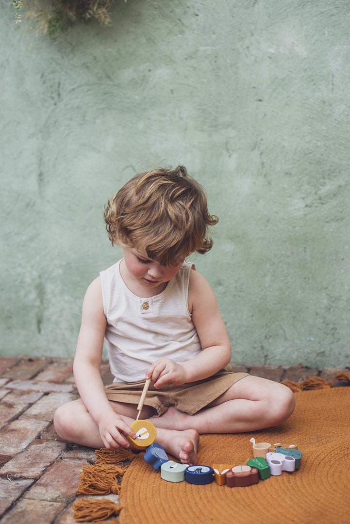 The perfect way to train those little fingers! Gather all animals using the wooden needle at the beginning of the string. Children learn to perform complex and precise movements with their hands while playing.
